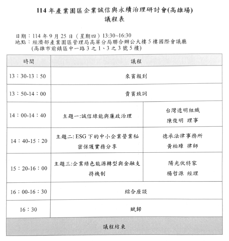 #ESG下的中小企業營業秘密保護實務分享 議題